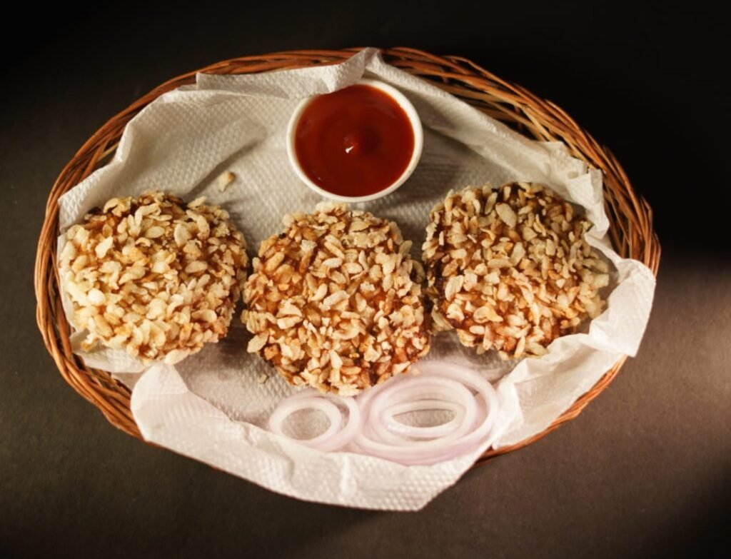 Chicken Chire Chepta is a uniquely delicious snack made from chire (flattened rice) that’s coated with flavorful chicken masala and fried to golden perfection. The magic lies in its super-crunchy texture—every bite gives a satisfying crispiness while still delivering the rich, savory taste of spiced chicken.